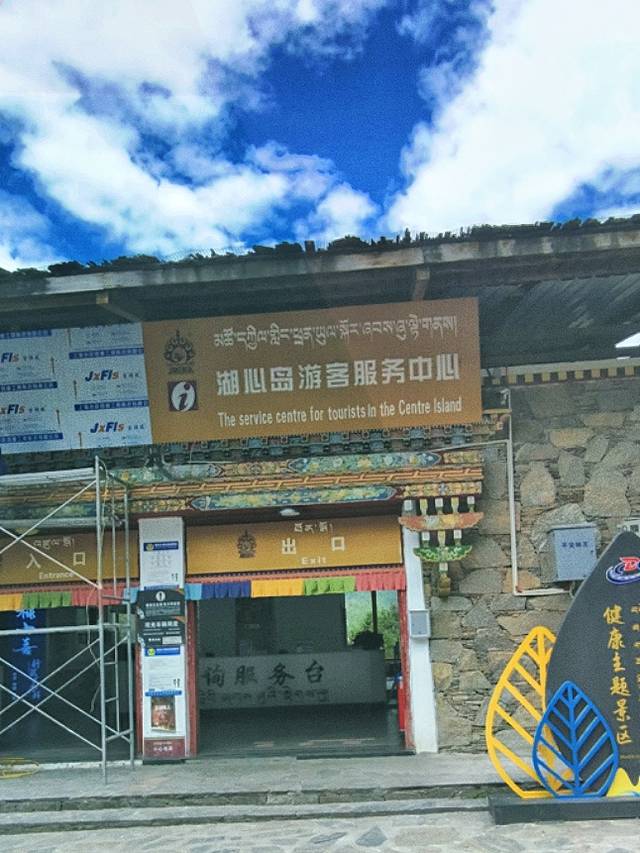 穿过游客服务中心就可以看到湖面的两座浮桥,直通湖心岛。