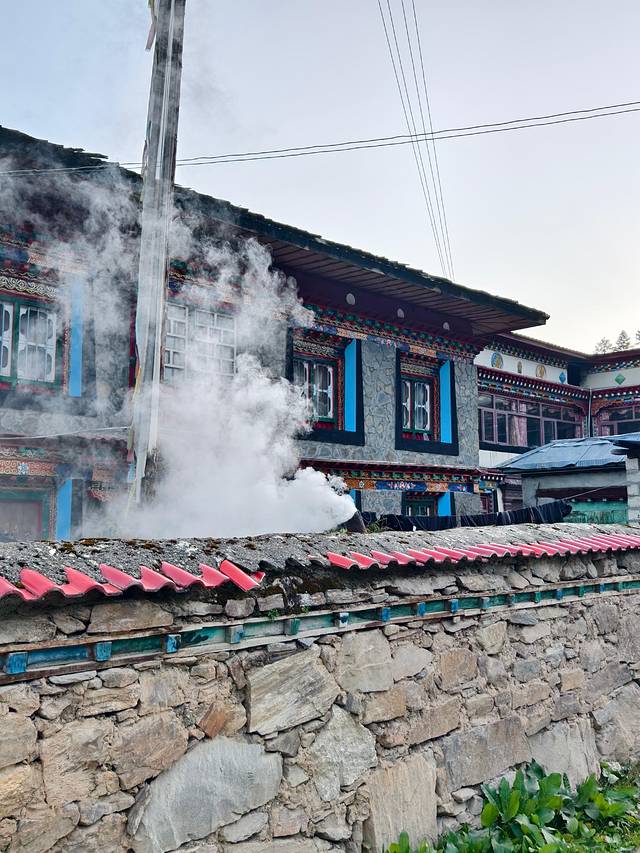 一晚无梦,早上起床天开始放晴,群山还隐在晨雾里,炊烟从屋顶袅袅升起,混着淡淡的清香。