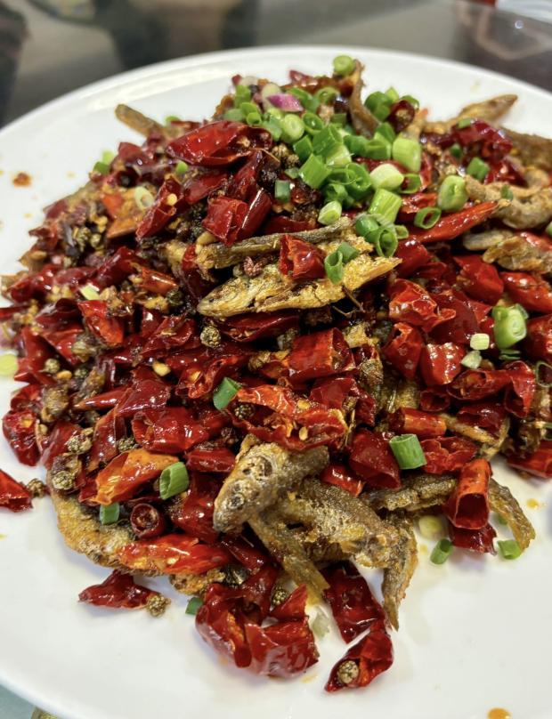 小炸鱼配辣椒炝炒,酥脆惨了!一口接一口香得过瘾,别的地方真吃不出这个味道!