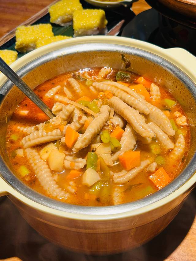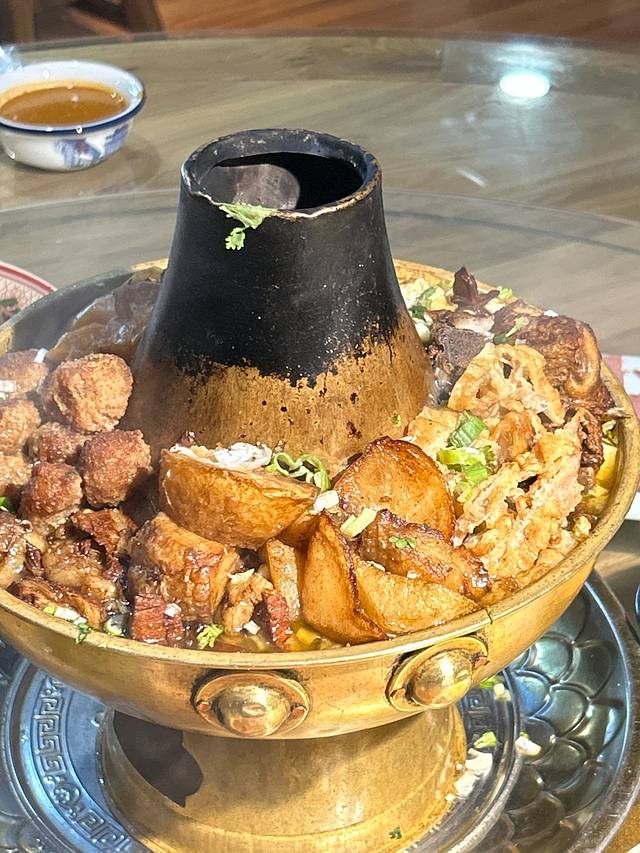 锅内是层层堆积的食材,不仅保留了原食材的滋味,炭火炖煮还多了一份鲜香,一口一个吃到停不下来!他家真的蛮实惠的,满满当当的快要溢出来啦