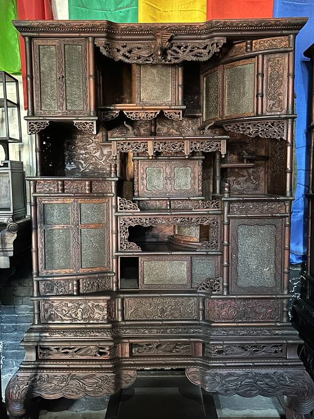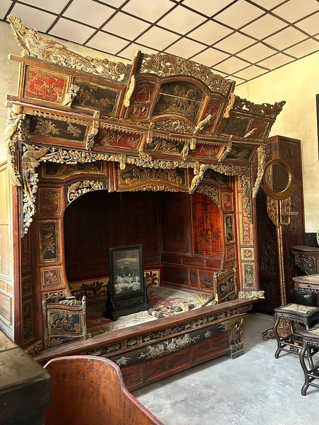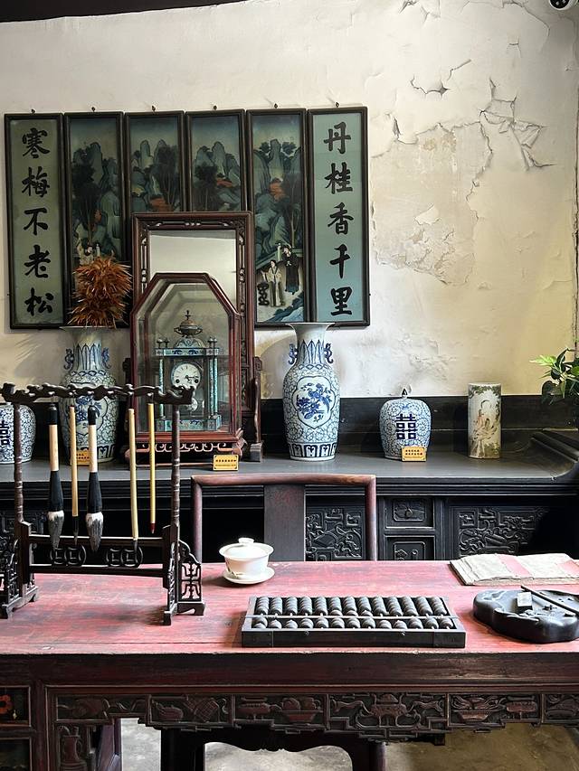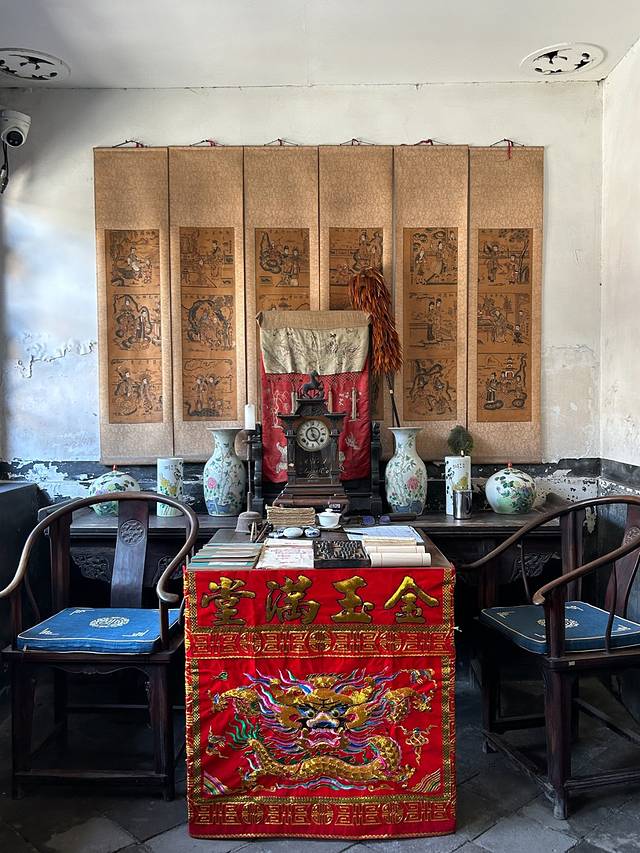 府内是座三进院落,前院是总管院,内有更夫房、施善舍、账房等,中院是书院,内有信房、书斋等,后院是大太太院,内有丫鬟房、大太太房、用膳房、堂屋、老夫人房、老爷房、少爷房等,各房内皆设明清家具、饰品、字画若干。 中院、后院西侧均有小门通往佛堂院,院北首为佛堂,堂门西侧是地下金库入口。