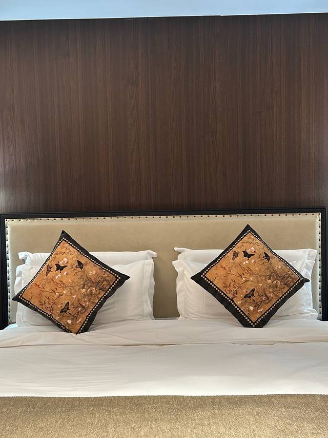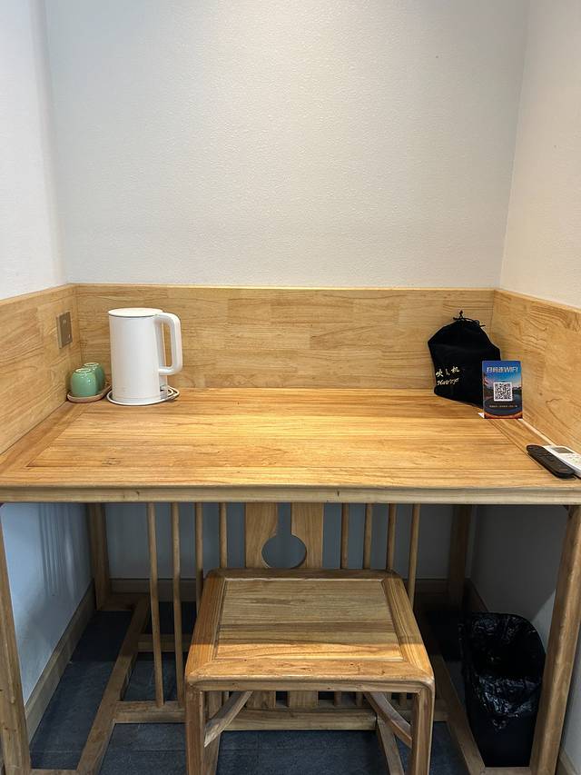 如果有自驾来的朋友这家真的可以考虑,离北门的停车场很近,完全不用担心交通的问题,对于旅游党来说再方便不过。同时房间内的智能家具包括马桶和自动的窗帘设置得非常人性化!实木大床、桌椅质感满满还配备了小冰箱和茶包..