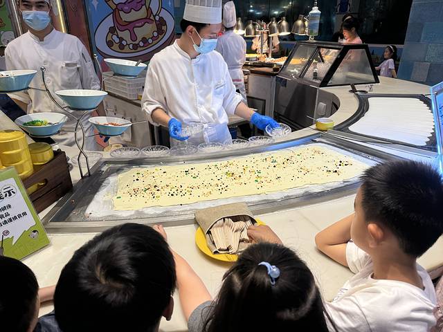 长长一排小蛋糕以及现场炒冰激凌,硬控小朋友半个小时