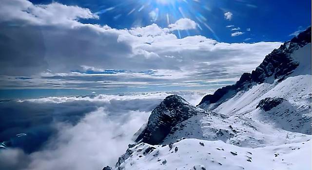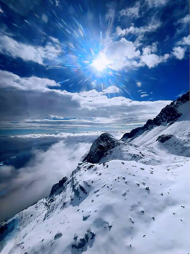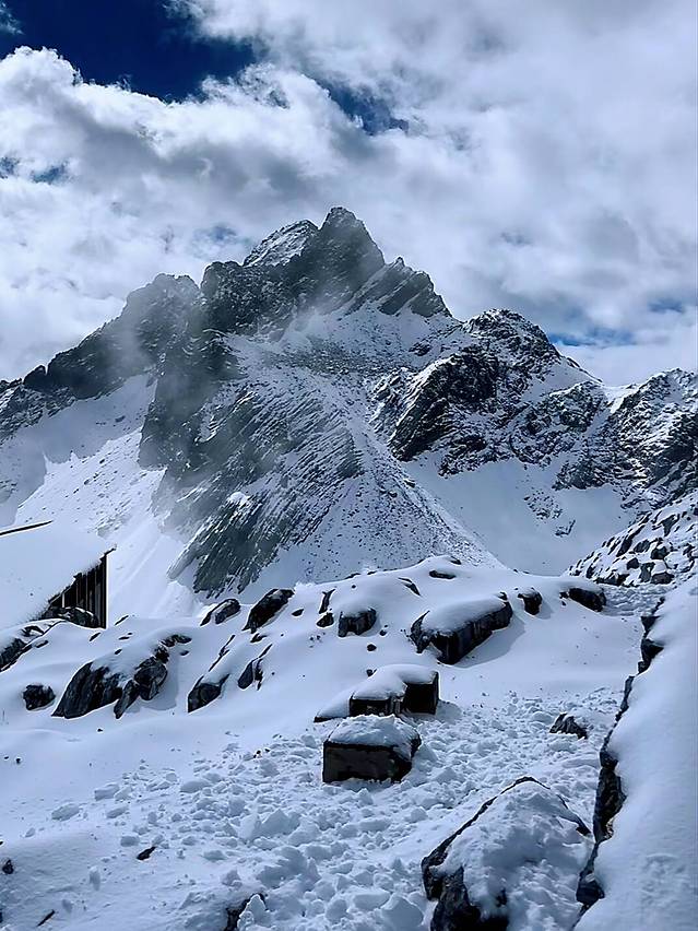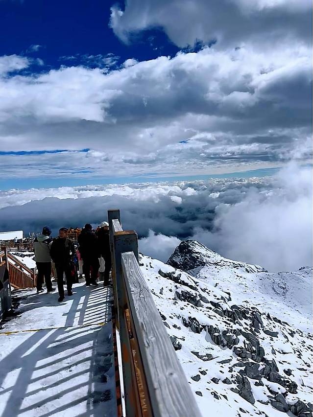 去了冰川公园索道和蓝月谷,很幸运前一晚下雪了,山上都是皑皑白雪特别美!