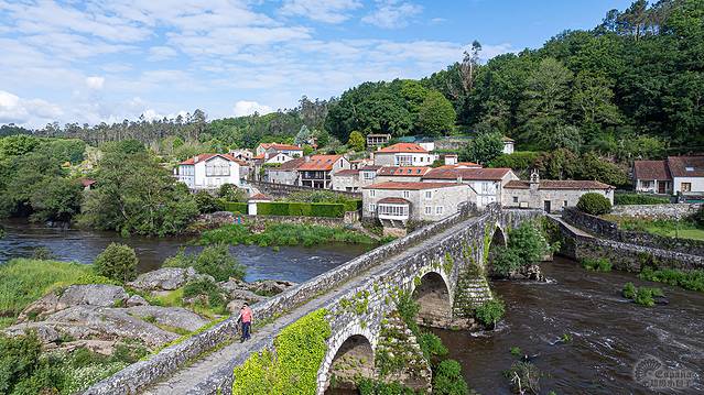 该桥建于中世纪,其建筑风格体现了罗曼式建筑的典型特征。桥梁结构坚固,由石材砌筑,拥有多个桥墩和拱洞。历史上,它曾是朝圣者和当地居民跨越坦布雷河的重要通道。如今,它作为加利西亚文化遗产的一部分被保留下来,继续为徒步朝圣者服务,其古朴的形态与周围的自然风光共同构成了一幅优美的景致。