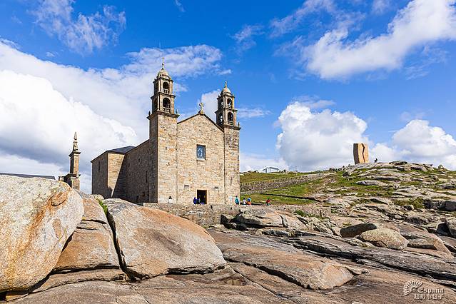 离菲尼斯特雷不远,穆希亚的(Muxía)“圣骸之船”教堂则提供了另一个关于抵达的视角。教堂内供奉着一艘精致的石船模型,其灵感直接来源于载运圣雅各遗骸抵达此地的传说石船。
