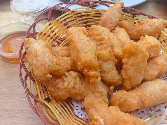 惠来虾枣,都来到本地了必尝,虾料足,蘸橘油好好吃,三个人吃到最后有点腻