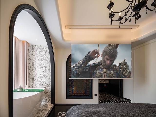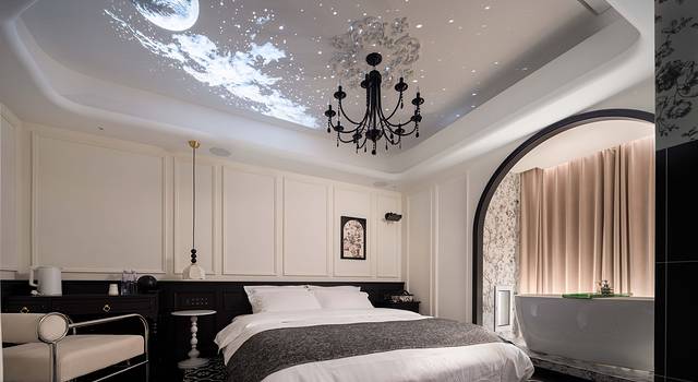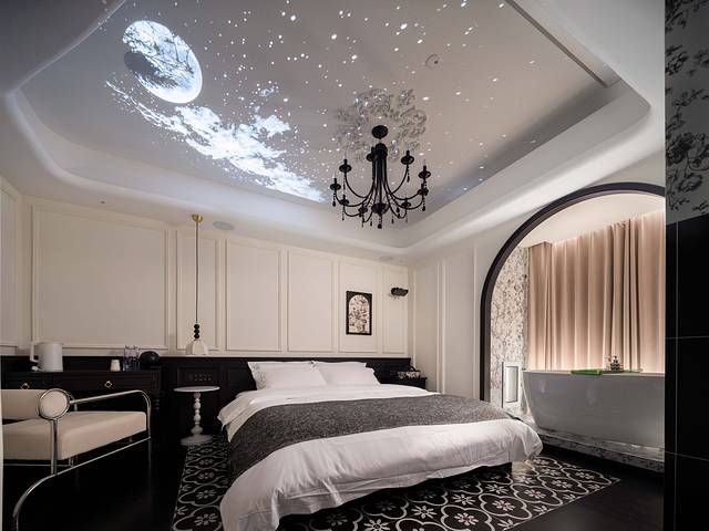 而且房间里的配置也超贴心!巨幕投影直接实现 “躺在床上看电影” 的快乐,画质清晰到像在私人影院,晚上看完电影再拉上窗帘,柔软的床垫让人一夜好眠,完全没有住酒店的陌生感。