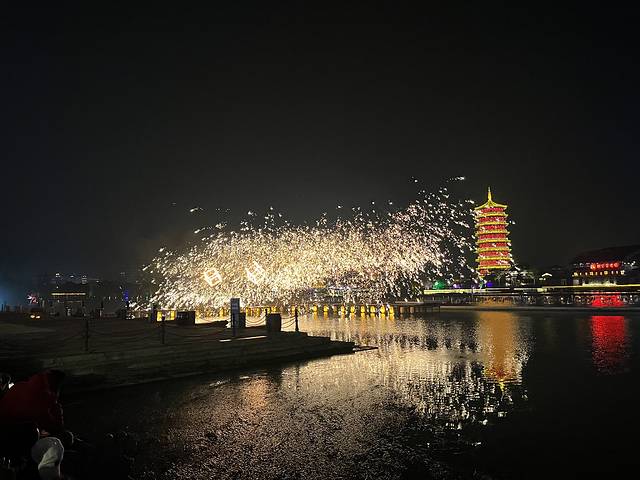 人潮如流水,涌向石渚湖开阔的观景台。骤然间,巨大豁口撕开暗夜,整座湖面化为流光的画布!楼阁飞檐顷刻投影其上,通体玲珑剔透,犹如一块被天工雕琢、置于水上供人凝视的稀世水晶。