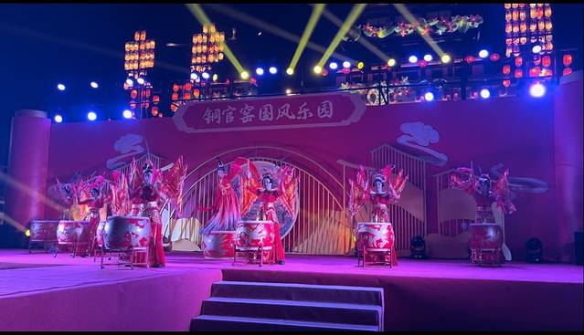 心神尚未自温婉余韵中抽离,骤然鼓声再起!赤红烈焰瞬间吞噬了整个水幕背景,奔腾咆哮。一群赤裸上身的汉子踏着红光出现——铜官绝技“打铁花”,在深沉的夜色里燃起了引线!