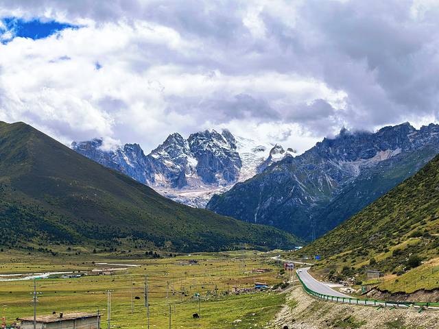 接下来去了雀儿山观景台,在快到雀儿山观景台的前方,有一块指示牌仁措,向左转,有一段路经过一座小桥,可以停车,那个位置观雀儿山雪山更漂亮,没有遮挡,还有流水。