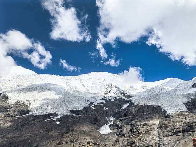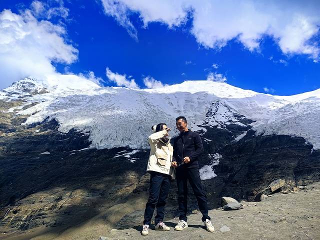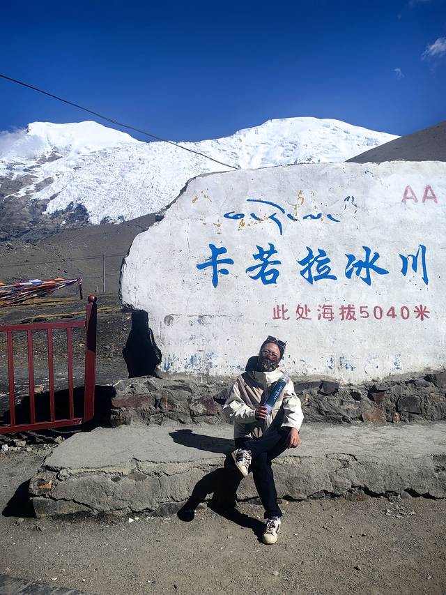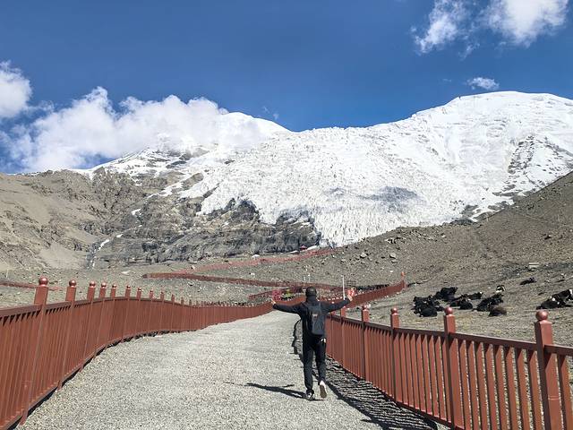 一早直奔卡若拉冰川,路边可近距离观看到冰舌,景点免费开放,车停在上面的停车场,先走的坡道再爬楼梯,大家悠闲慢爬觉得还好,已经比较适应高原了。天气也很给力,我们上去正好阳光洒下来,看到了红河谷拍摄炸过的冰川的伤痛,感伤有幸在他消失前匆匆见到一面,感恩山海包容,让我们能在其中驻足。我们下来很多从拉萨过来的旅游团也到了,正好错开。