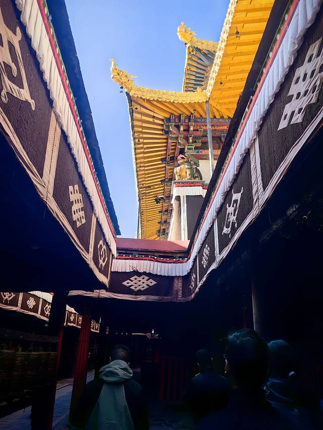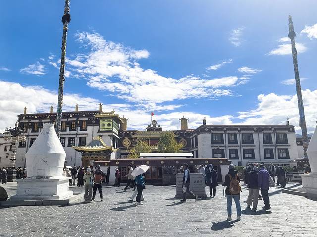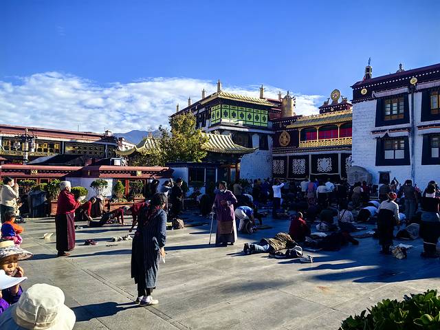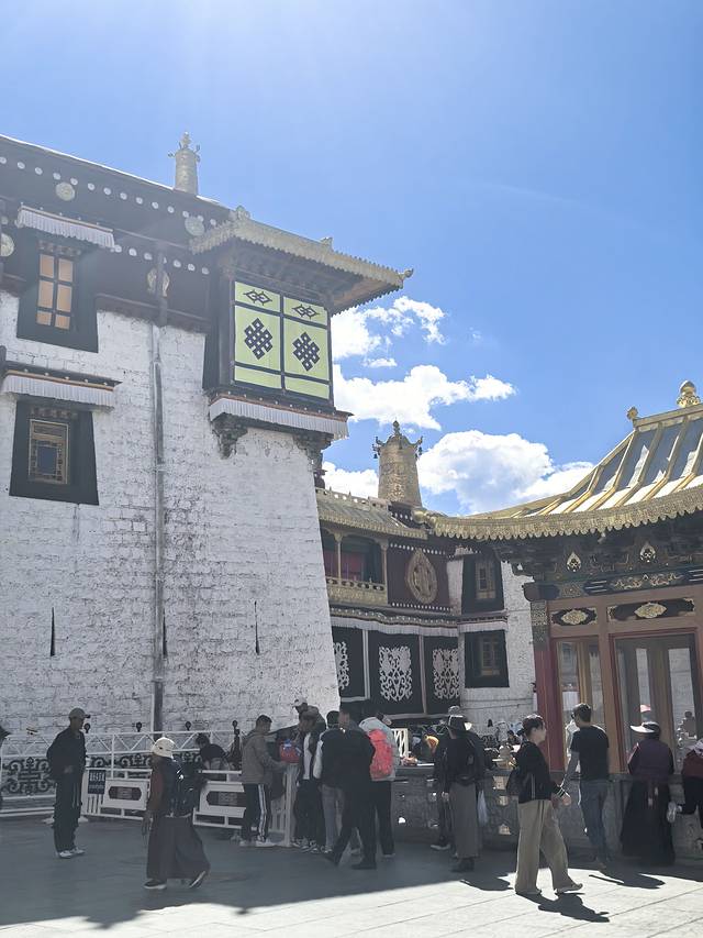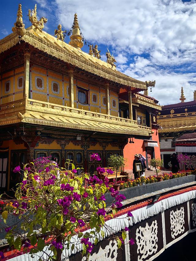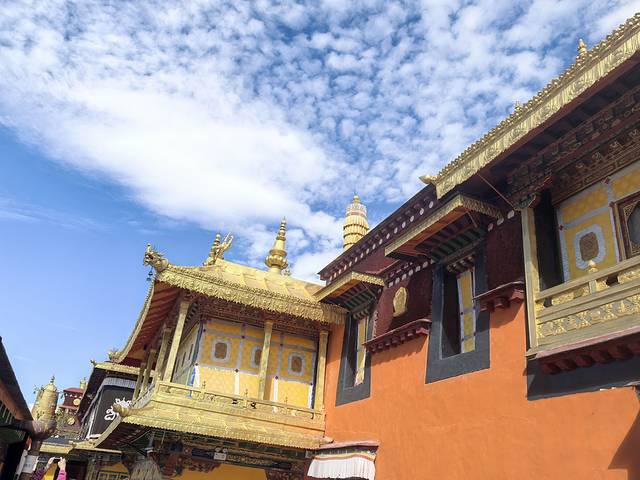 上午去大昭寺,去完大昭寺,终于明白为什么说这里是西藏的灵魂所在。的确“先有大昭寺,后有拉萨城”。这次我们没有请野导,而是在刷身份证进入后找的正规导游,导游的讲解让我真正穿越进千年的故事里,有幸目睹了镇寺之宝释迦摩尼12岁鎏金铜像以及观音殿、度母殿、松赞干布殿、宗喀巴大师殿等,藏着藏传佛教各教派的本尊和护法,每一步都是一场文化的探秘,且真真切切感受到信仰的力量。信佛,信的不是神灵,而是因果;学佛,学的不是迷信,而是智慧;拜佛,不是弯下身体,而是放下傲慢;合掌,不是双手作秀,而是崇敬万物。在这一刻,我悟了。