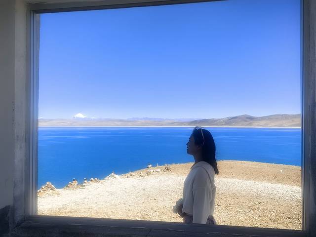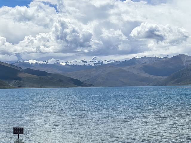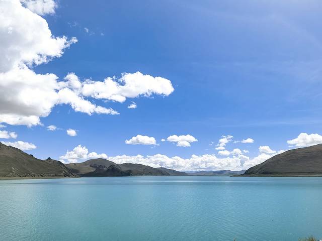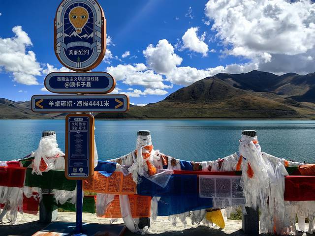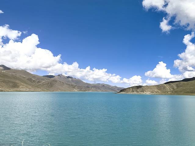 接着[羊卓雍措],西藏三大圣湖之一。我们是先经过4号观景台(免费),推荐逗留,可以靠近湖边,阳光洒在湖面上波光粼粼,像星星掉进了湖里。湖水又像是被上帝打翻的调色盘,从浅蓝到深蓝,层层渐变,角度不同看到的蓝色也不同。但我觉得前面自驾一路走过的地方,随便拍都很漂亮,感受风和自由。再往前走,羊湖321号观景台都要收费,按人头100/人。回想,在4号观景台前有个野生路边停车位,有小哥卖咖啡,可以坐下来静静欣赏一下羊湖,还是很美的。后面321号观景台性价比不高,不推荐。