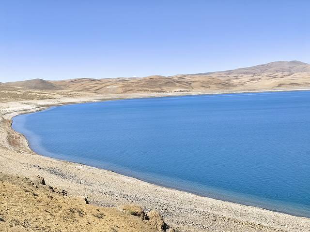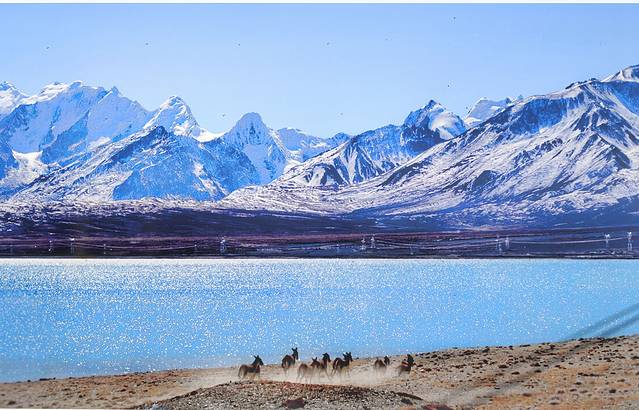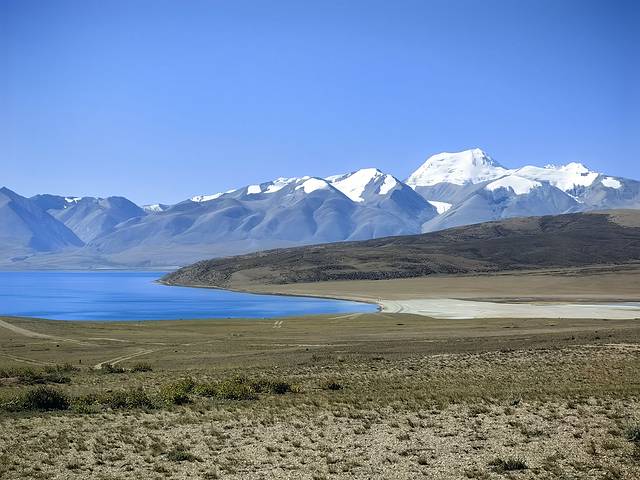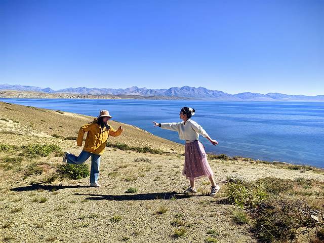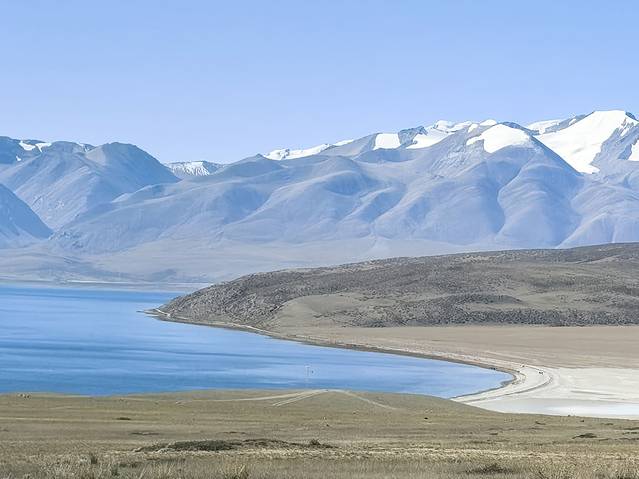 萨嘎出发约1.5小时,能到达[佩枯措]观景台,能同时看到湖和[希夏邦玛峰],湖水极致的蓝搭配雪山的白,显得深邃而静谧,希夏邦马峰是喜马拉雅山脉在我国境内的8000米级雪山,令人心醉。