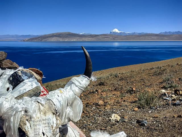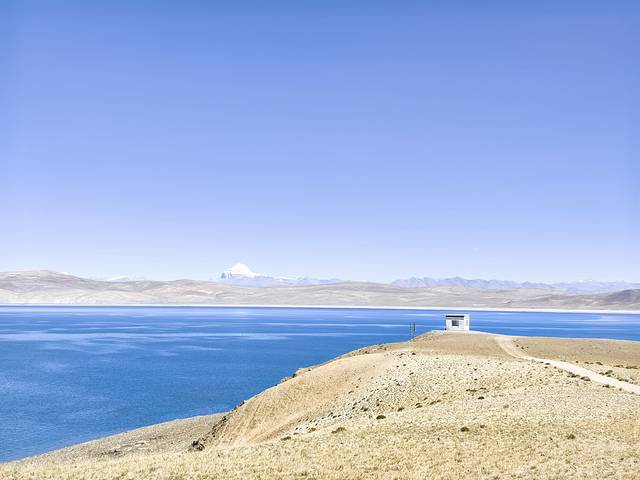 [拉昂错]观景台继续往前走,这是一个咸水湖,湖水苦涩,周围植被稀少,显得荒凉孤寂,因此也被称为“鬼湖”。观景台一直往湖边走到小木屋旁,可以拍到与冈仁波齐峰同框画面。据说拉昂措和玛旁雍措在远古时代是同一个大湖,后来由于地质变化气候变迁水位下降,被一条狭长的山丘分开,形成两个独立湖泊。而圣湖玛旁雍措象征着光明、甘甜和生命,拉昂措代表了黑暗、苦涩和死亡,它们就像一枚硬币的两面,共同构成了世界的完整性。从地理位置上看,拉昂措与玛旁雍措静静躺在神山冈仁波齐的南面,仿佛诉说着世界中心冈仁波齐,同时守护和凝视着象征光明与黑暗的两个湖泊。真正的神性既包容圣洁,也掌控着黑暗与苦难。来到此地,不仅仅是观赏风景,更是一场精神上的洗礼,理解并接纳世界的光明与黑暗,感悟生命的完整与和谐。