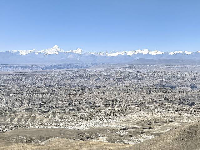 继续前行,一路上都时长可以看到纳木那尼雪山和冈仁波齐雪山,都可以靠边停车拍照。[纳木那尼峰]是阿里第一高峰,也是喜马拉雅山脉西段最高峰,海拔7694米,与冈仁波齐峰隔湖相对望。继续出发,导航“五彩沙漠”,免费可停留片刻。晚上宿萨嘎县。