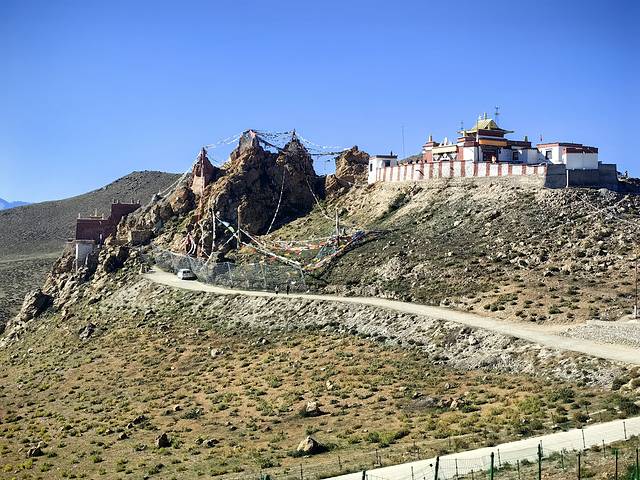 导航吉吾寺(旁边有条路可以到玛旁雍错湖边,但现在有人拉了线收费,寺旁边的观景台不收费)