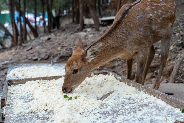 投喂:提前准备新鲜胡萝卜(切成 3-4 厘米的长条,方便鹿进食)、生菜叶,洗净后用保鲜盒装好;不要喂面包、饼干等零食,会影响鹿的肠胃健康;投喂时将食物放在投喂台上,不要直接用手递,避免被鹿咬伤。