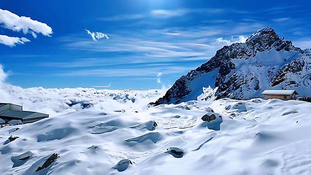 刚下过的大雪和点点的日照金山,完全被雪山的美所震撼