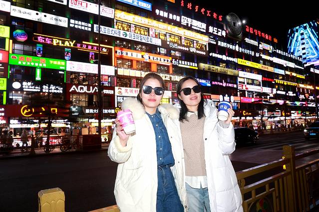网红字幕墙如今俨然成了延吉的地标性打卡点。马路对面甚至路中央都挤满了举着“长枪短炮”的摄影爱好者。我们自己拍的照片效果实在一般,索性花了30元请人帮忙拍了几张。成片的光影和氛围确实不错,只是拍摄过程太匆忙,效果只能说勉强留念吧。