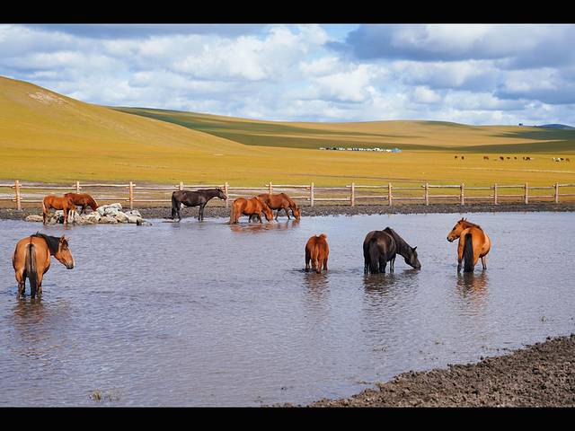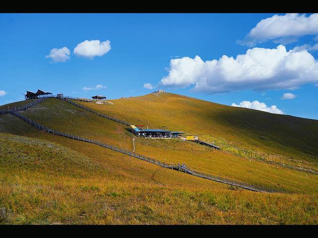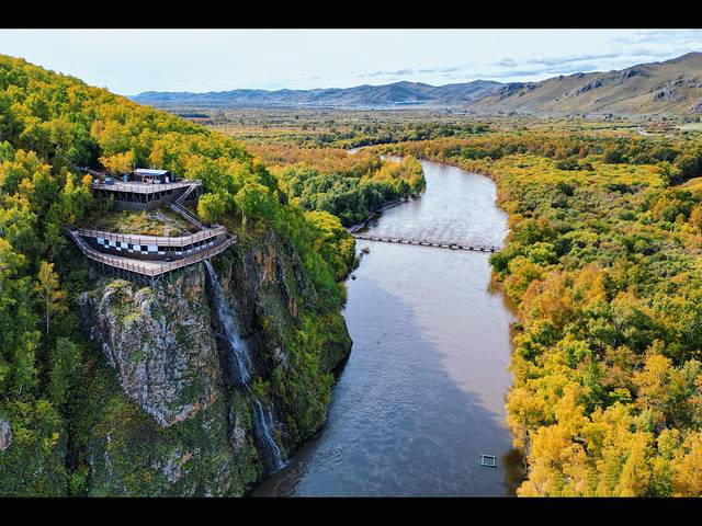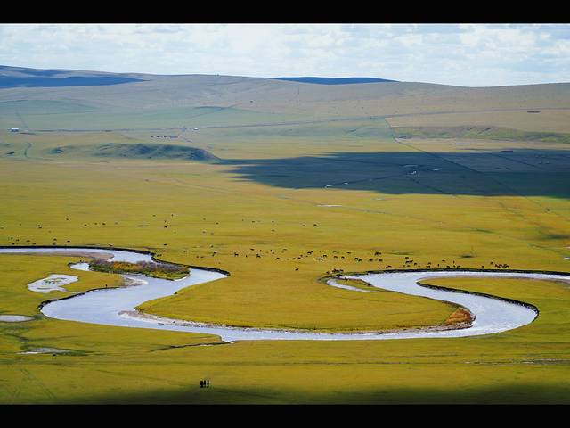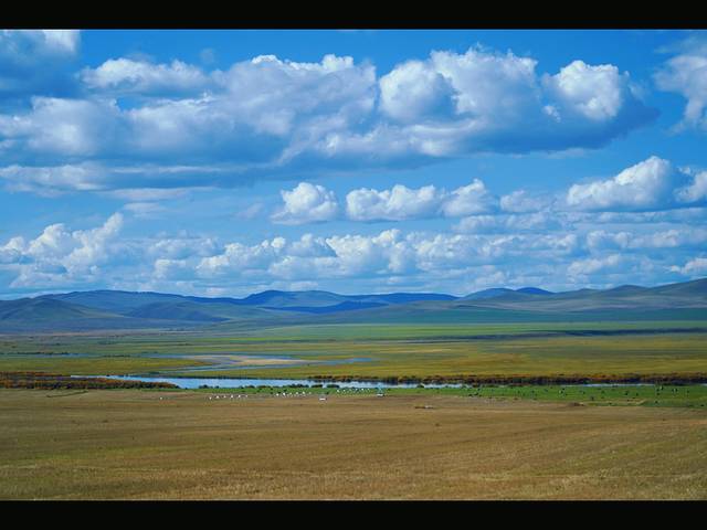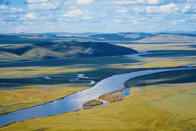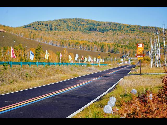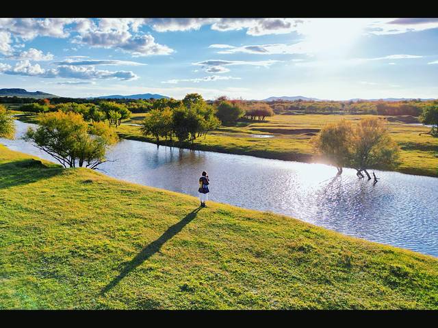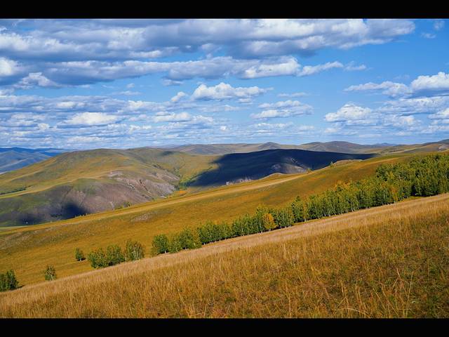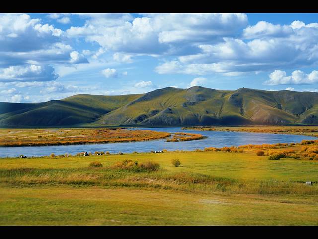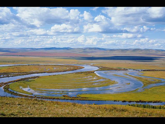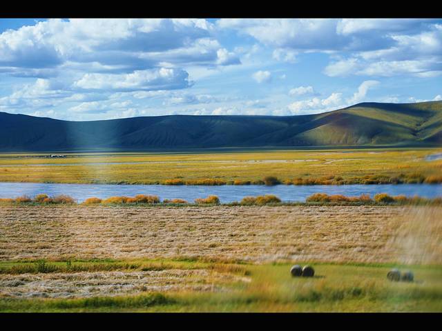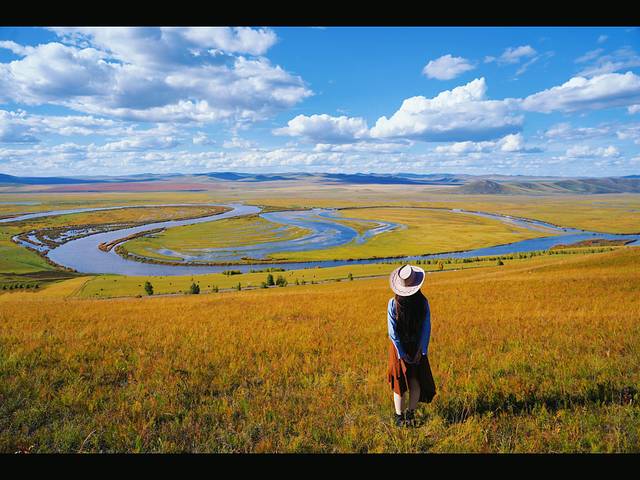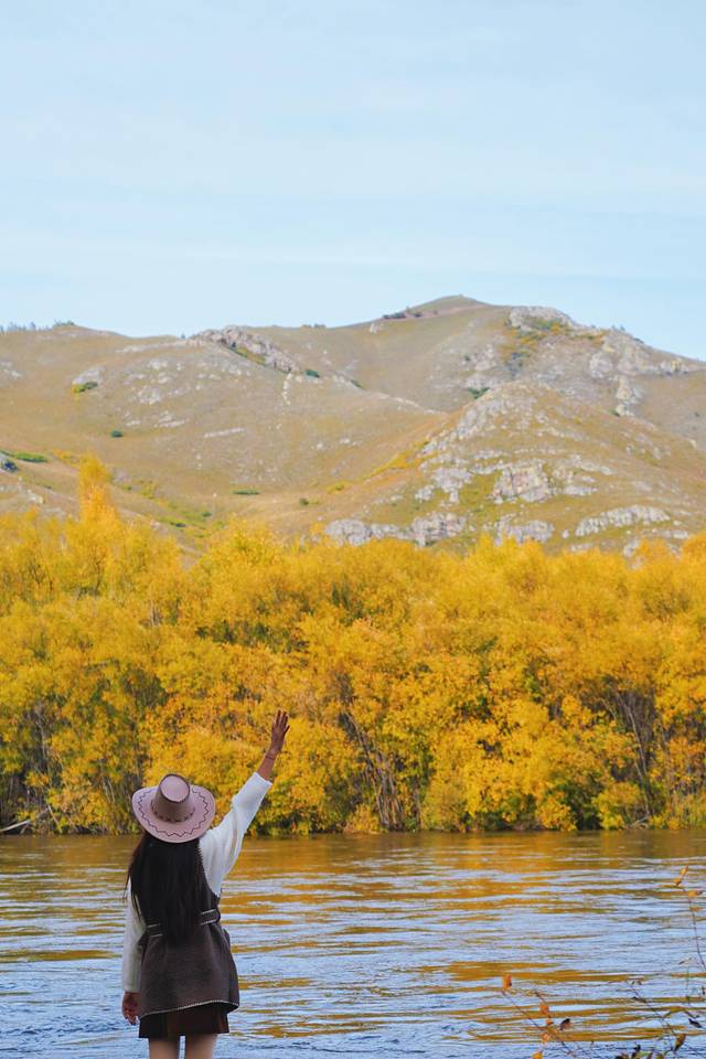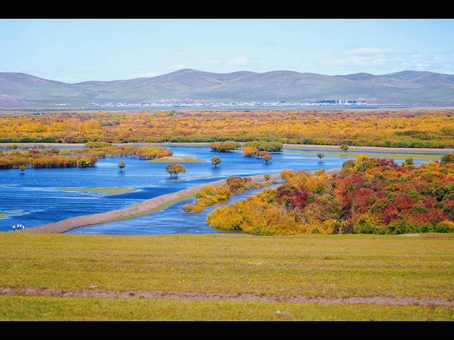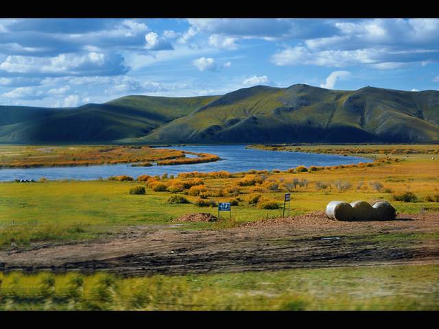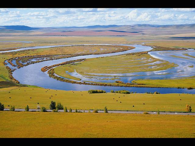 这里正处于森林草原过渡带,金黄的草场与碧蓝的河水交织,景色非常上镜。