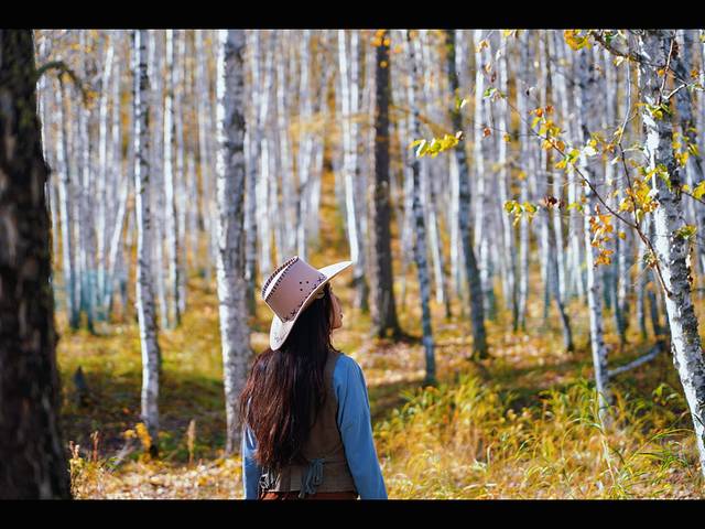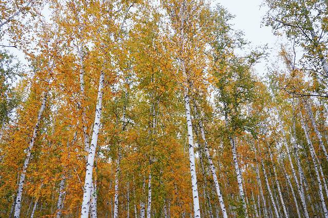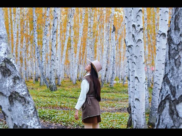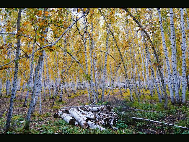 我们到达白桦林已经4点多了,白桦树已经黄了,美得正是时候。