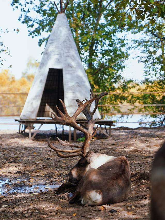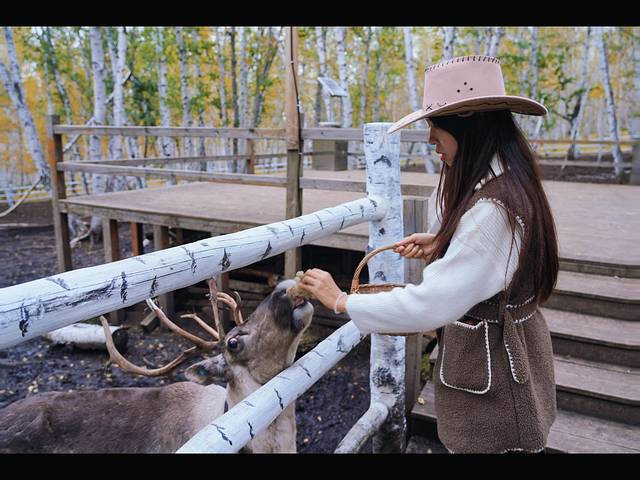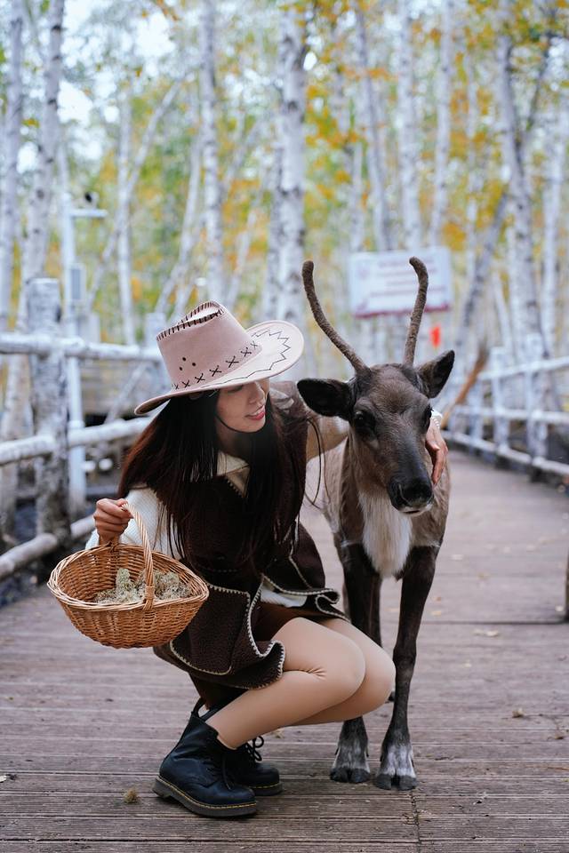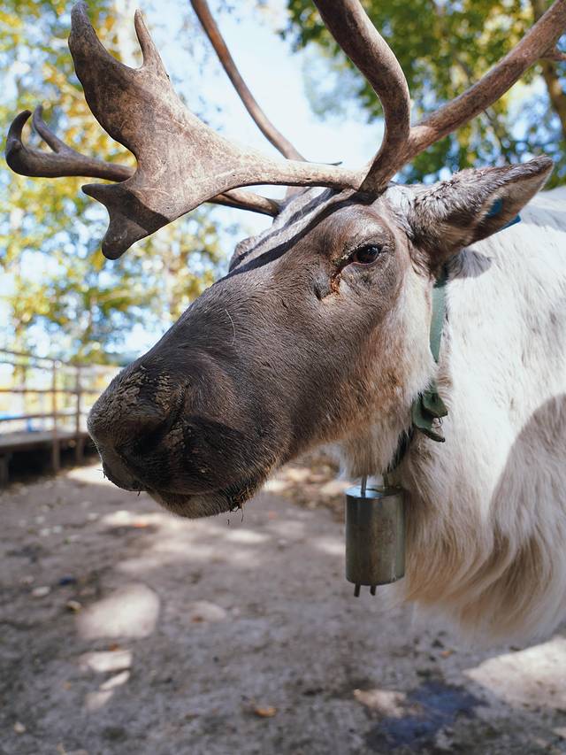 不愧是白桦林,驯鹿苑的围栏都是用白桦树枝做的。在这里,我们可以亲手喂食这些森林里的精灵,但需要购买苔藓,一篮15元,约等于门票了。