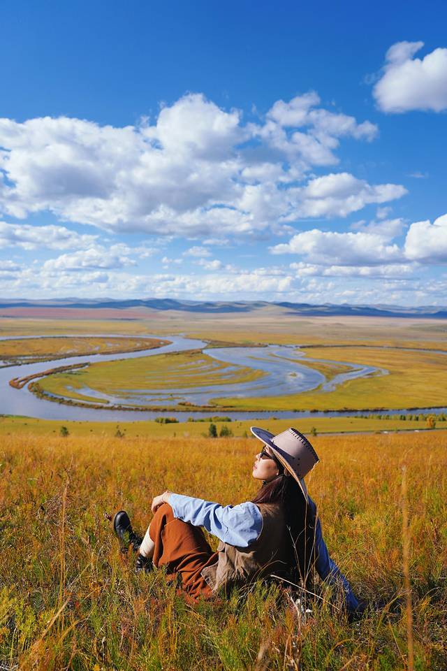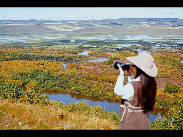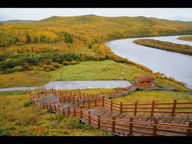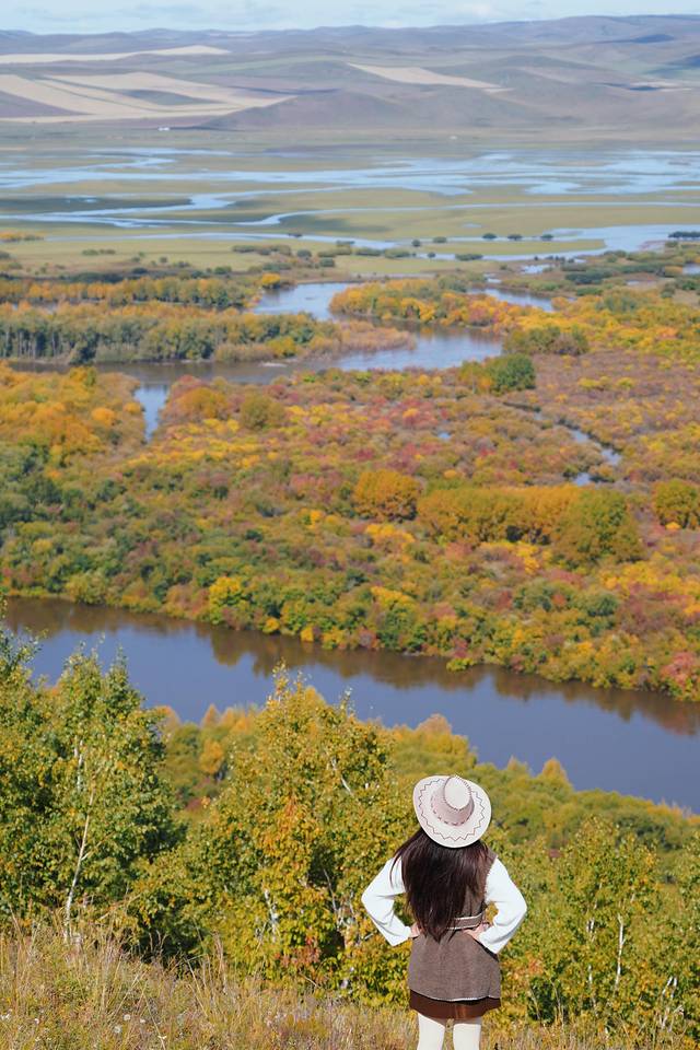 这里视野极其开阔,壮美景色尽收眼底!只见根河像一条闪亮的缎带,在湿地中肆意蜿蜒,画出无数道优雅的河湾。