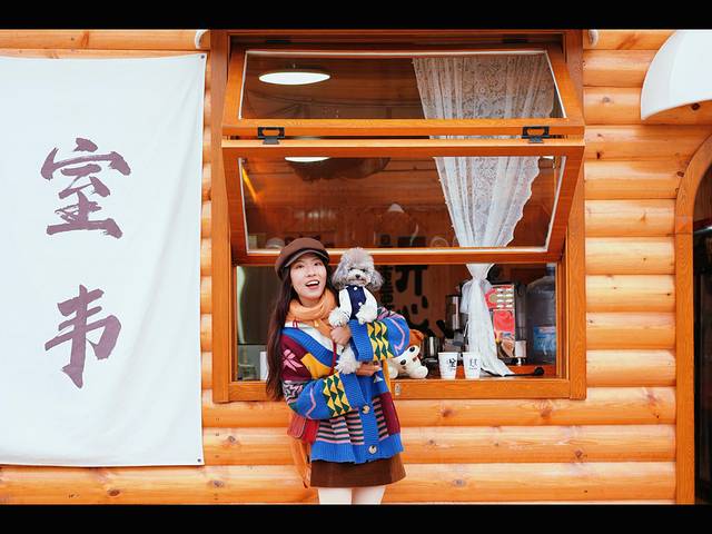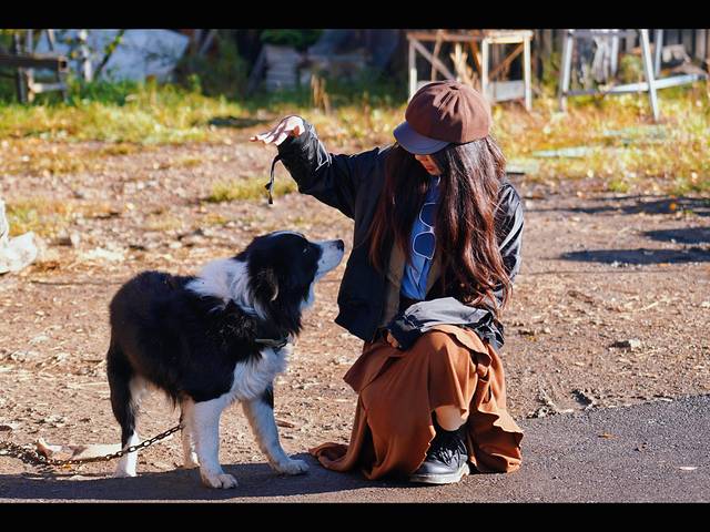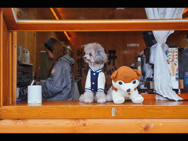 有只小狗特别乖巧地趴在地上,我过去合影。大叔担心狗子不配合,还站在一旁默默守护着,太暖心啦!