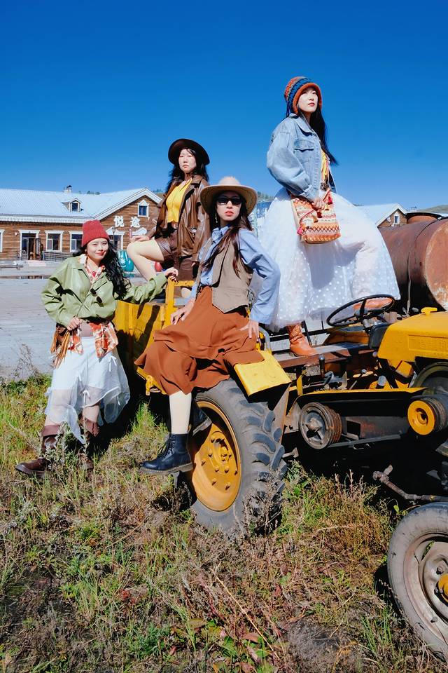 楠楠:温柔安静的文艺女青年,我们4个人中唯一一个有老公和孩子的小姐姐,常驻天津,每一套穿搭都很出片,她和木子一天换3套衣服拍,也是很拼了!