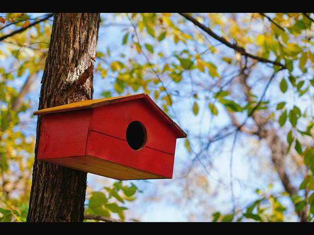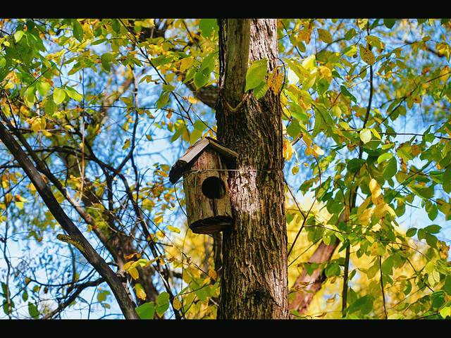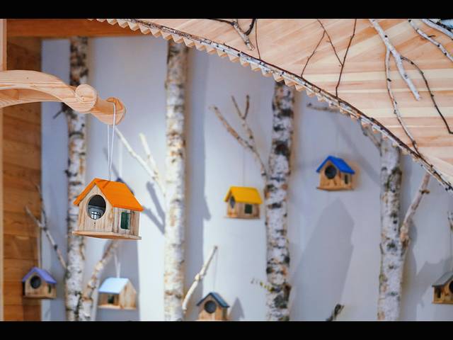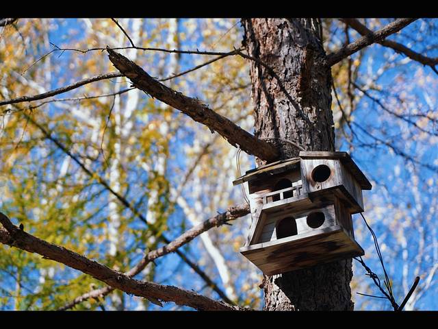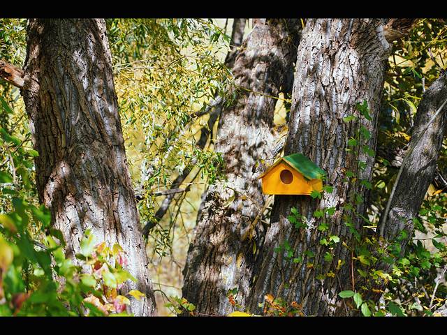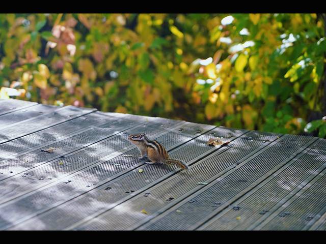 一路看到很多小松鼠,树上挂着的可爱小屋大概是工作人员给它们准备的吧?