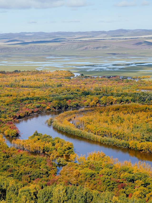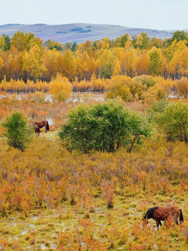 如果说莫日格勒河是草原的飘逸哈达,那额尔古纳湿地就是大地层次分明、色彩绚丽的巨大画板。