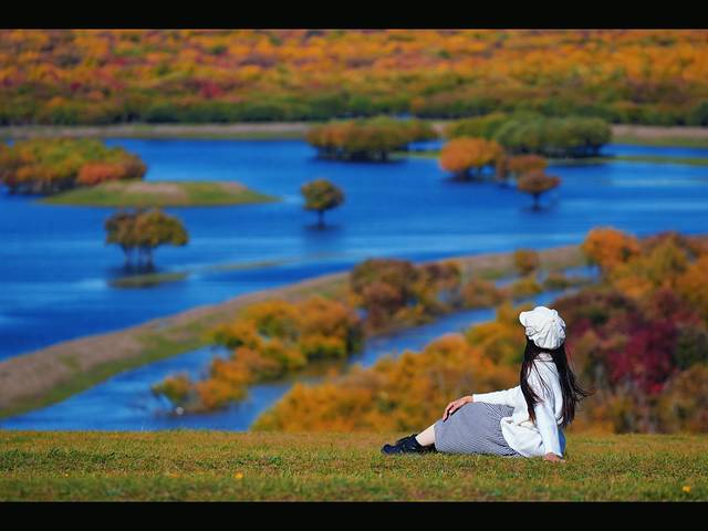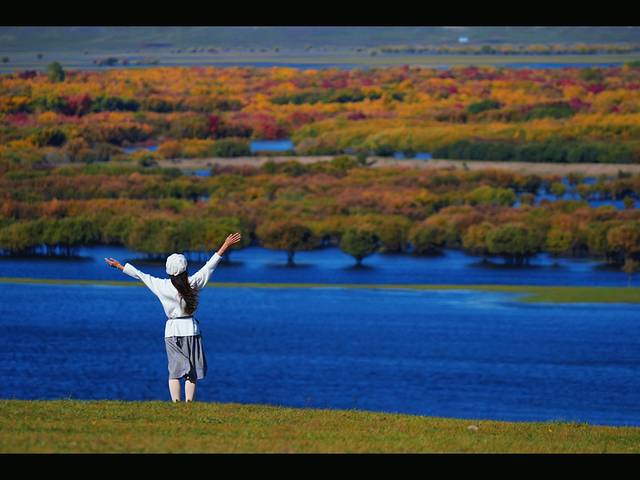 只见那湖水像蓝宝石一般,饱和度高到不像是肉眼可以看到的那种蓝!搭配上周围五彩斑斓的灌木丛,随手拍都是美如画的程度!秋天的额尔古纳像一幅浓墨重彩的油画,在这里体现得淋漓尽致!