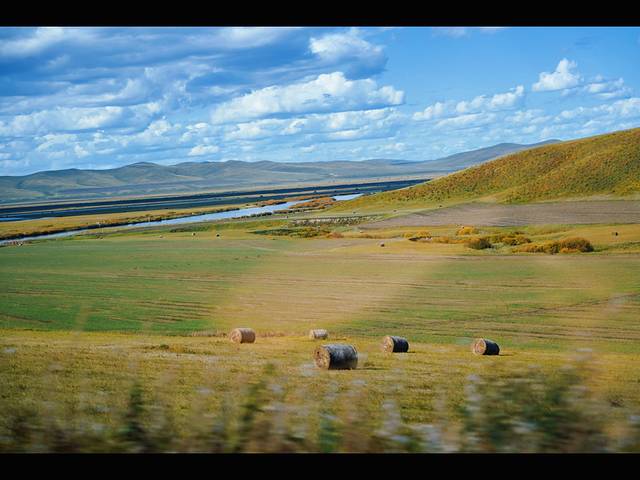 第一天,在蓝天白云的陪伴下,我们出发啦!当车子驶出海拉尔,草原像一幅缓缓铺开的金色地毯。