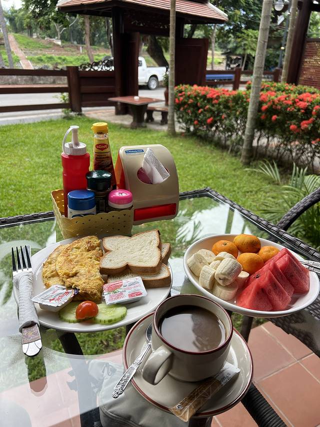 动车12:50-13:52从琅勃拉邦到万荣。酒店是这家NICEVIEW酒店,很家庭式的,有点民宿的感觉。价格便宜还有简单的早餐。