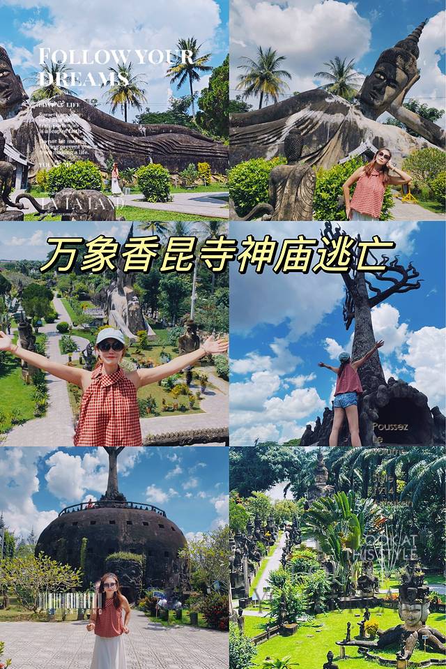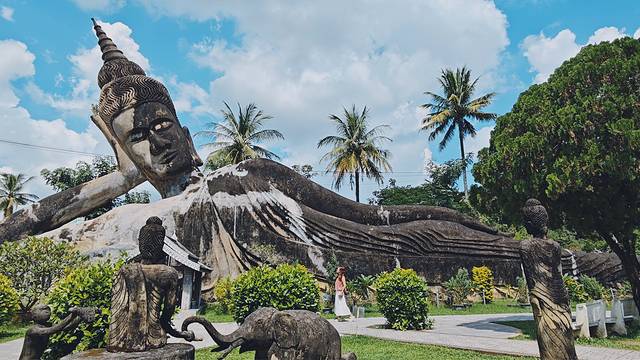 • 香昆寺(万佛公园):离万象市区25公里左右,一座没有大殿,没有僧人的寺庙,唯有大片园林和200多尊神态各异的佛像雕塑,人们通常将其称之为万佛公园,其中50米的卧佛和天堂地狱塔极具视觉冲击力。这里是万象最有魅力的旅游景点,像是现实版的神庙逃亡。门票价格:6万基普,开放时间:08:00-17:30,交通方式:14路公交车,每半小时一趟车,车程大约45分钟,车费:1.8万基普)。