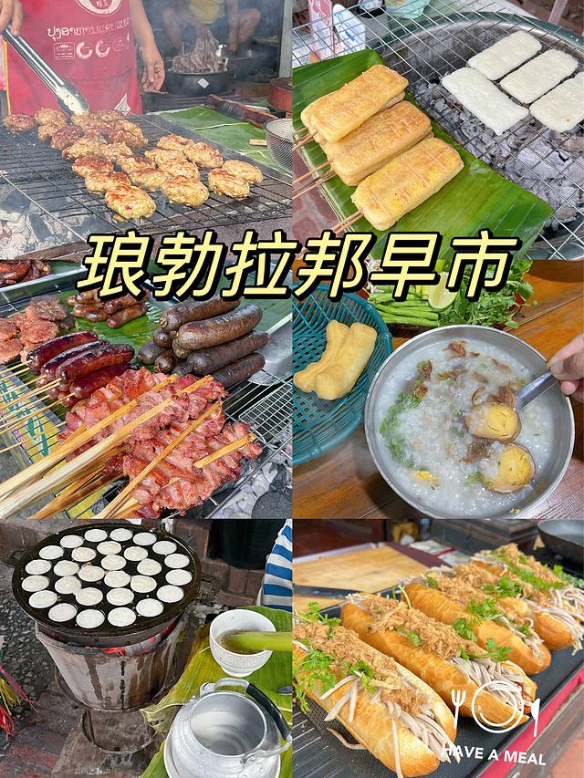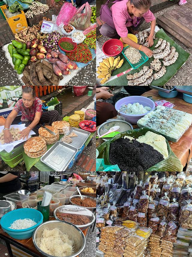 7点结束了刚好逛吃下早市,有好吃的粉和粥、糯米饭、老挝米粉、椰子铜锣烧、烤香肠烤肉等等。