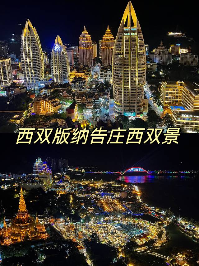 告庄景区,湄公河星光夜市的夜景璀璨,各种特色小吃和工艺品。不远处的曼斗吃小吃更正宗一些。