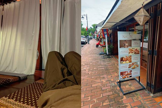 结束后找了家环境很棒的SPA,老挝按摩 才13万一小时,非常舒服,按完出来在旁边的本地咖啡店享用完美下午茶,还看到了不错的日落。