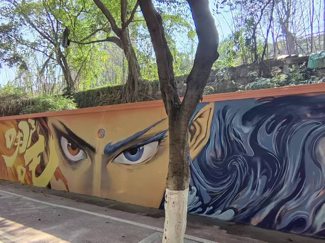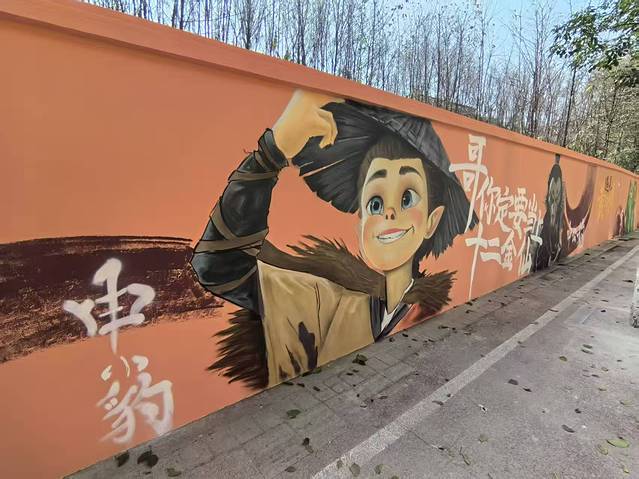 脚步在黄桷坪停下,眼睛却被一场突如其来的色彩爆炸瞬间俘获。这条新近落成、长约130米的涂鸦街,绝非安静的画廊,而更像一个被按下暂停键的狂欢现场。最吸睛的,无疑是那对“破次元”的组合:东方的叛逆英雄哪吒,与西方的篮球传奇库里,竟在方寸墙面上隔空对话。这种看似无厘头的并置,却充满了本地智慧的幽默感,仿佛在说:艺术无国界,快乐更不分东西。