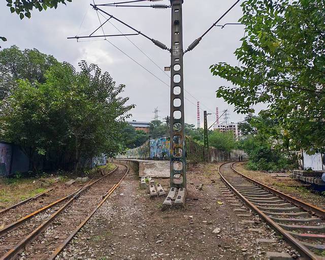 那段早已废弃的轨道在道路尽头,铁轨在经年累月的风吹雨打下,覆着一层赭红色的锈迹,像一位沉默老人手背上蜿蜒的脉络,静静地躺在碎石枕木间,向着记忆的深处延伸。