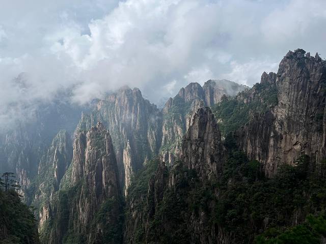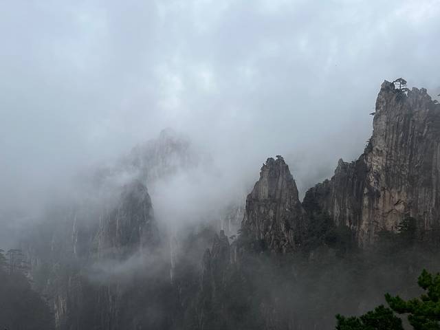 既然这样,那我们也只能随遇而安了,原本以为会以一场遗憾告终,但在观景台休息时,黄山的云雾散开了,反而感受到了黄山的魅力。