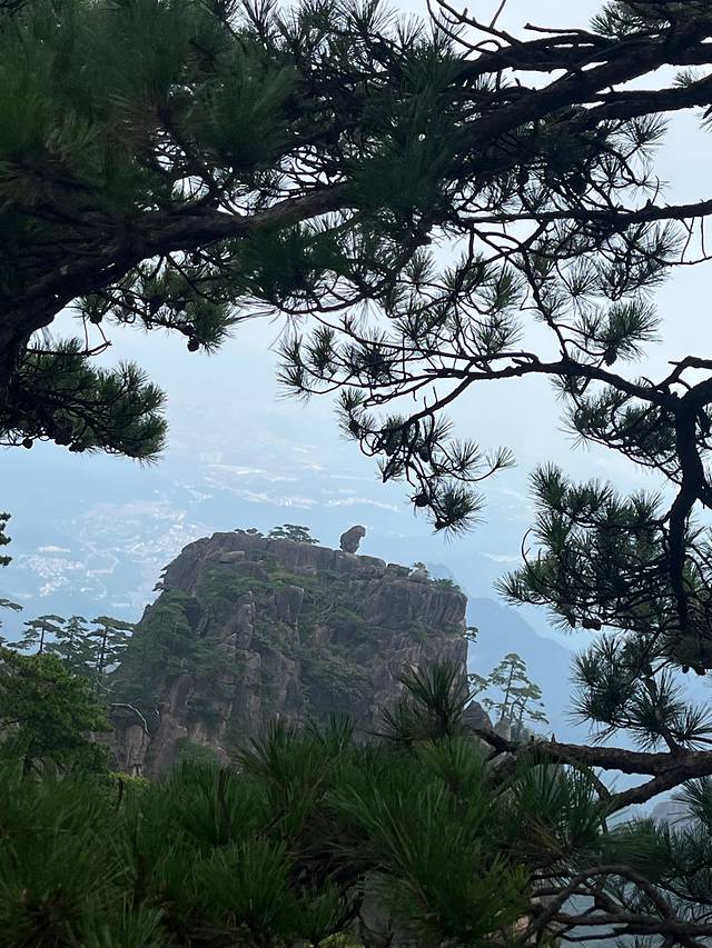 之前也听说过黄山的云雾很出名,但是确实多的有点影响第一天上午的景观欣赏了,大概上午的感受就是可以看到近处的松柏,看不到远处的山峰。