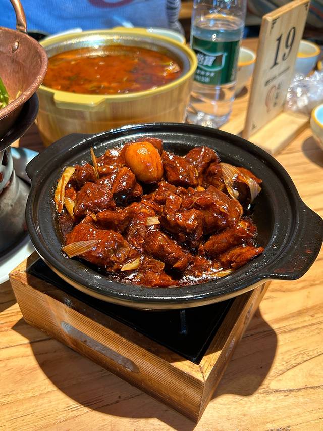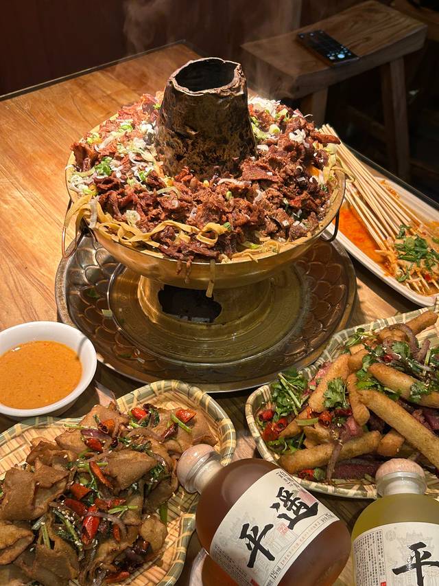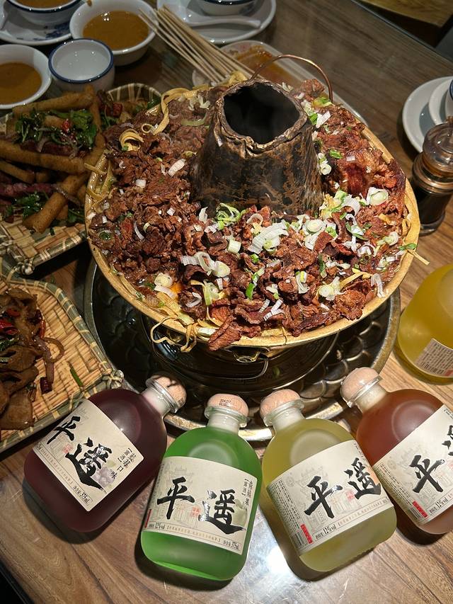 离市楼很近并且就在同兴公镖局的在 平遥 古城南大街的主干道上,正对面,在冬天尤其适合来上一顿热乎乎的了什锦铜火锅与其他火锅不同,不是在底料中涮煮菜品,而是将菜品按层码放好后,浇上底汤,用木炭加热炖煮。吃的时候,随着炭火加热,食材慢慢入味,先吃上层的肉菜,待底部的白菜和粉条吸收了肉香和蔬菜的清香后,味道更加鲜美,他家还有秘制蘸料喔!店里搭配火锅吃的还有 平遥 特色的古市楼酒,我们尝了百香果和红茶口味的,很喜欢~不是那种很冲的味道还有点甜甜的,果酒味道很多种呢,大家可以自由选