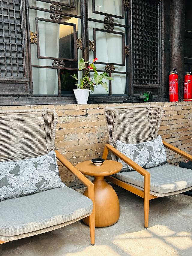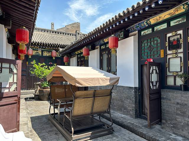 2.裕成源客栈:客栈一进院子就是典型的三进院落布局,青瓦灰墙、雕花门窗,满满的历史感。院子里绿化很好,坐在院落内完全是"大隐于市"的静谧感窑洞房里古朴的木质家具和现代化设施完美融合,既体验到传统韵味,又住得舒适自在