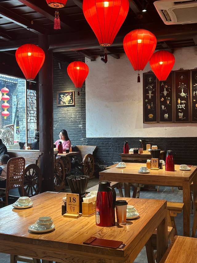古城内少有的两层庭院式餐厅,有上下两层都能坐人。店内装修古香古色,复刻晋商大院的风貌,木质结构、大红灯笼点缀菜品同样也很丰富,尤其是几道招牌菜,简直百吃不腻!老陈醋焖牛肉每一块肉都裹满酱汁简直下饭神器; 平遥 牛肉很劲道,有专门的蘸料搭配着吃;过油肉肉片滑嫩搭配着木耳洋葱;糖醋丸子可以一口一个