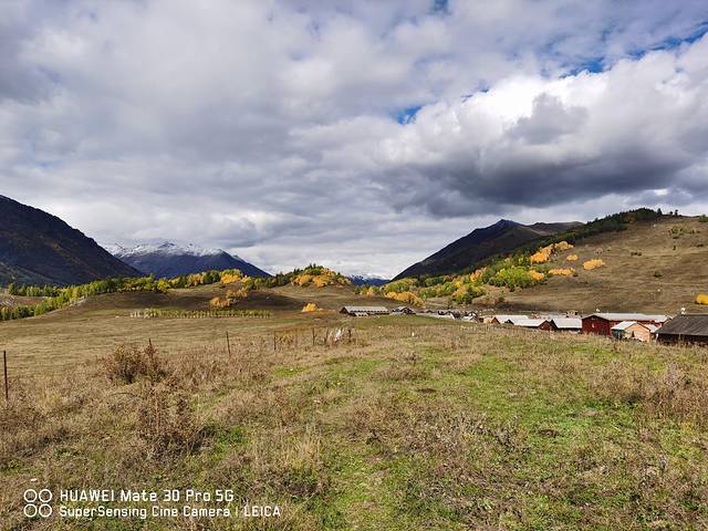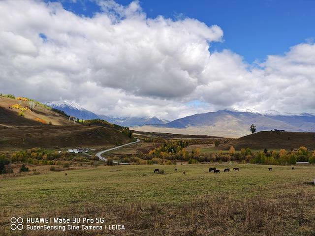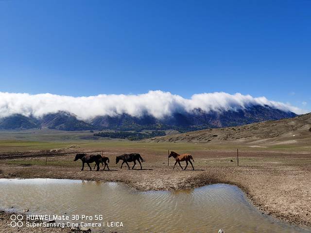 昨晚刮了一晚的风,早上已停止,并且天空放晴。从村子出发往那拉提去。