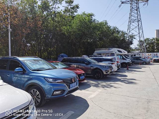我把车停在露营车辆停车区最里边的车位,就是以免其他车随时进出影响休息,相对安静,而且我的车位旁两边都留有足够的空间,同时我又停在划线框里面,我想这样无论别人怎么停,只要不占用我的车位,应该都有足够的空间。