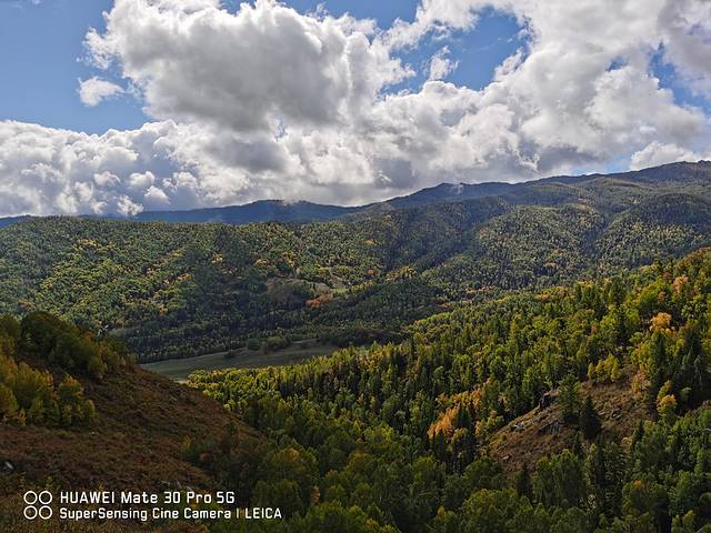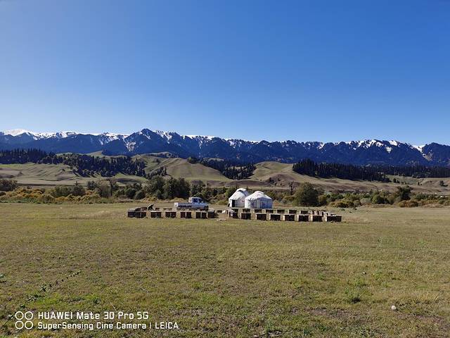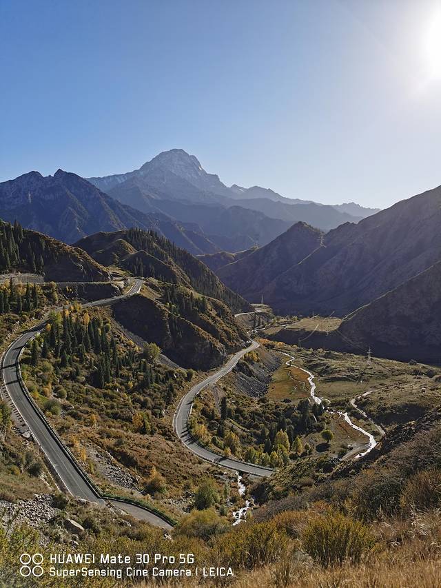到了那拉提游客中心我停留了一下,并没有进景区,因为现在这个气温里面草已经黄的差不多了,景色并不是最美的时候。我就远望了一下里面的山林和草原,就向独库公路出发了。